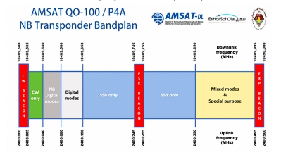 Le satellite Es Hail' 2 a été lancé le 15 novembre 2018. Satellite de télévision commercial, il abrite des transpondeurs radioamateurs (mode SX) qui sont actifs depuis fevrier 2019. Il s'agit du premier satellite radioamateur géostationnaire. Il couvre environ 140 contrées Dxcc. Le transpondeur bande étroite (NB) permet des contacts dans tous les modes étroits (SSB, CW, PSK ... pas de FM) et le transpondeur large bande (WB) est dévolu à la DATV (télévision numérique amateur). |
