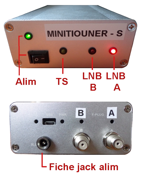 Le minitiouner-S est directement alimenté par l'une des LNB. Le gain de ma parabole est un peu "juste" pour la réception DATV et la majorité des stations est reçue de D0 à D4. Il est généralerment conseillé une parabole de 100 cm pour une réception DATV correcte sur ma zone. Certaines réceptions ne