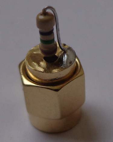 La terminaison 75 Ohms est fabriquée sur la base d'une SMA mâle légèrement usinée sur laquelle est soudée une résistance de 75 Ohms.