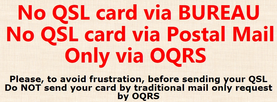 - Bon, alors ???, pas de Qsl en direct par courrier postal mais pour la Qsl directe, 4 Usd, pas d'Irbs ni de timbres ... Qsl directe par courrier postal ou pas ... ??? L'Oqrs n'est pas possible pour les Swl.