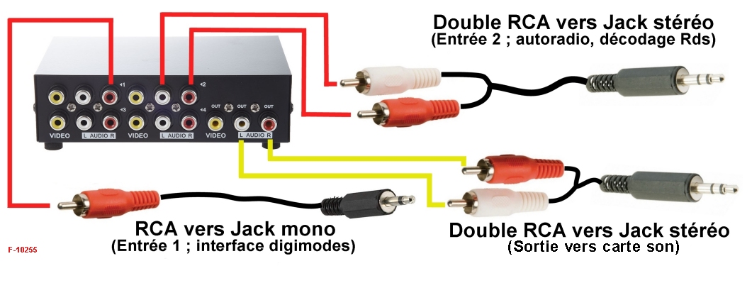 Un commutateur audio-video (voir Ebay) peut vous éviter cette gymnastique contraignante. Un exemple de cablage est donné ci-dessous. |