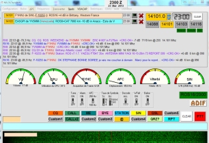 ROS, reverse beacon intégré au logiciel ; une fonction Chat permet d'envoyer des reports aux stations reçues. Ici, j'ai même une réponse en direct de F1HWJ ! |