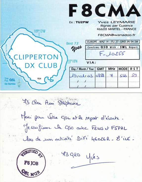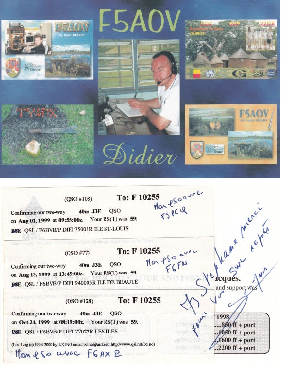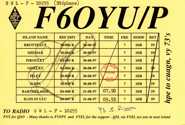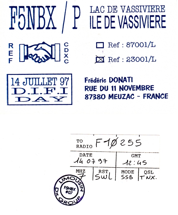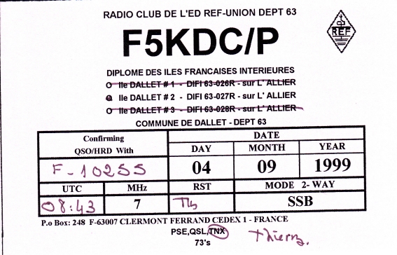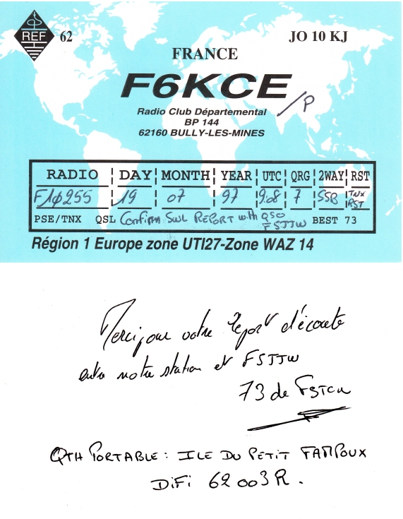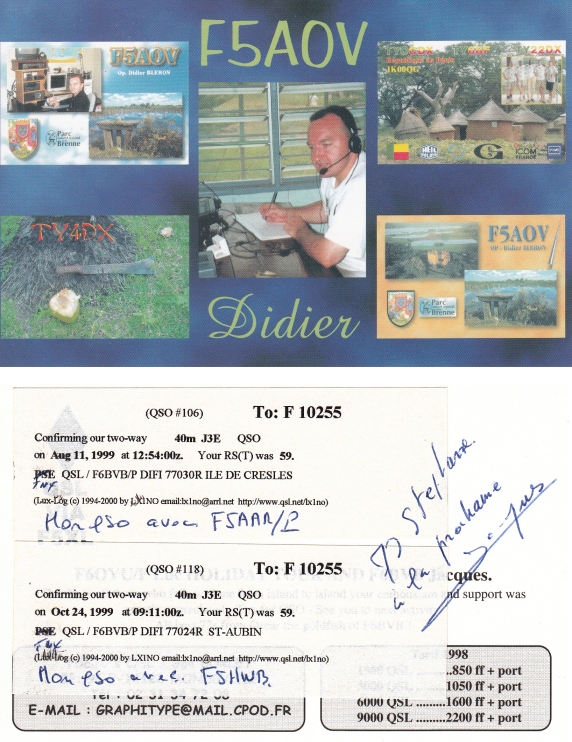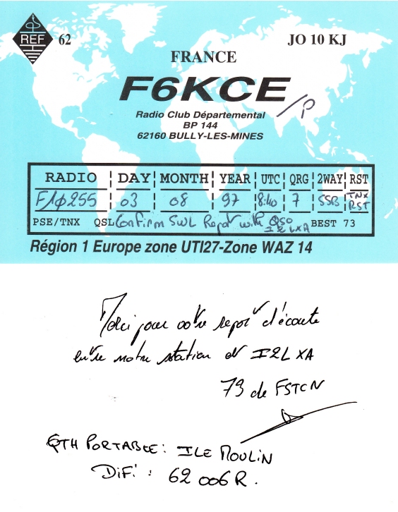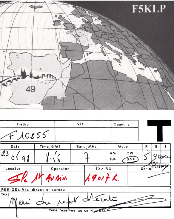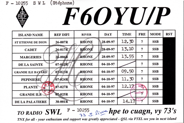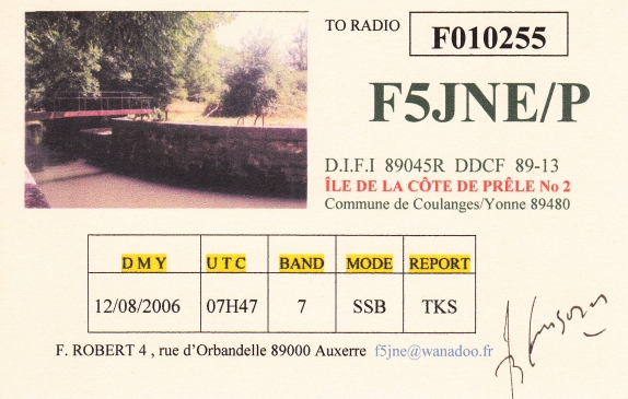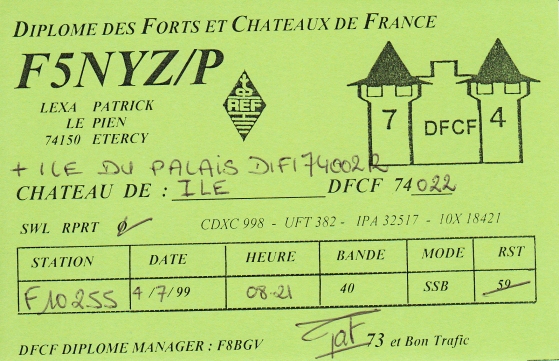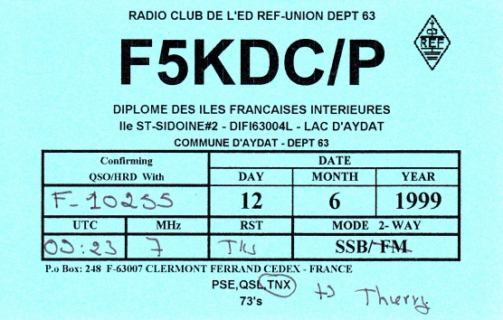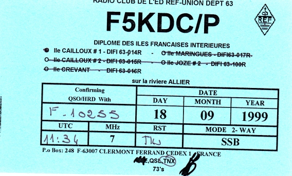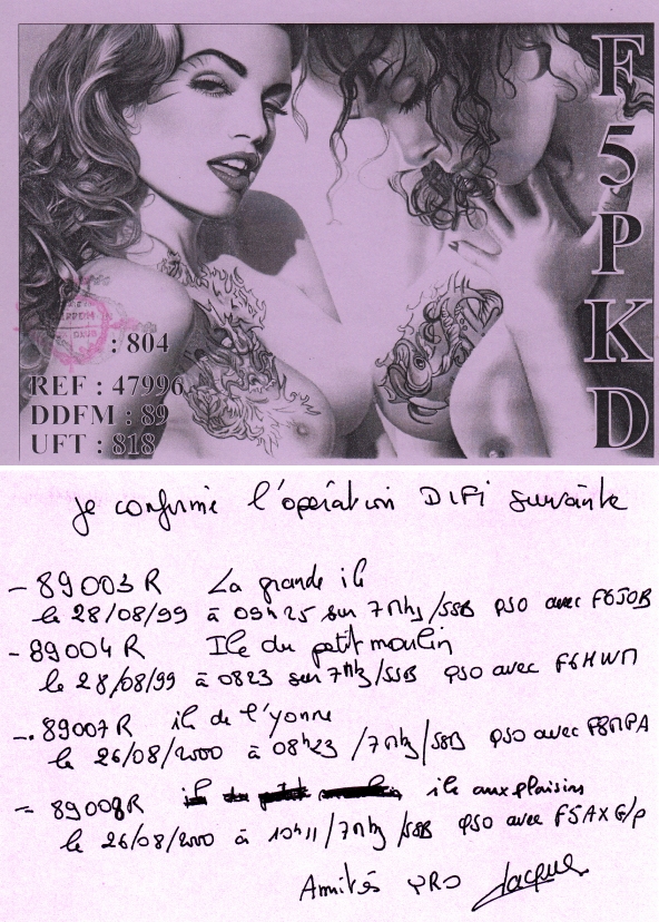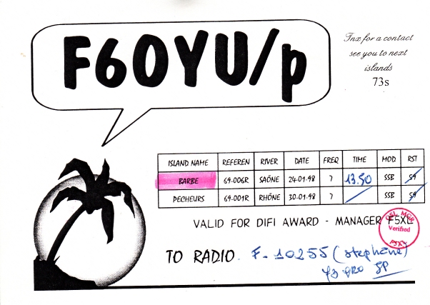 Qsl - Contrées Dxcc - Dxcc countries Qsl - Contrées supprimées - Deleted Dxcc Qsl - Contrées non DXCC - Non Dxcc countries Qsl extra-terrestres - Extraterrestrial Qsl Qsl des îles de la France métropolitaine (DIFM) Qsl des îles françaises d'Outremer (DIFO) Qsl des îles du Morbihan (DIM) Qsl radiodiffusion & utilitaires - Broadcast & utilitary