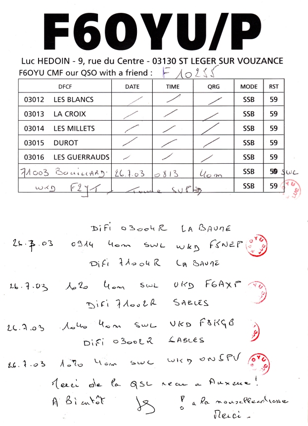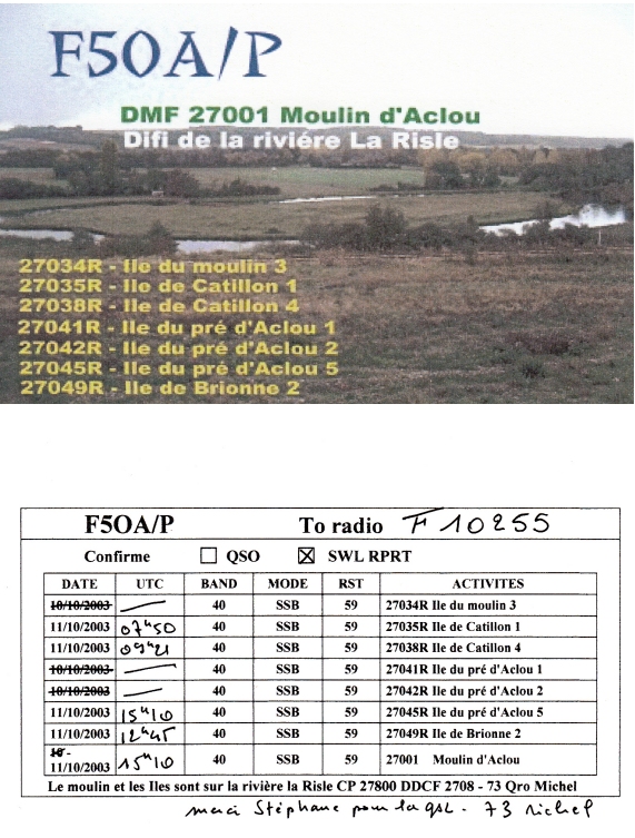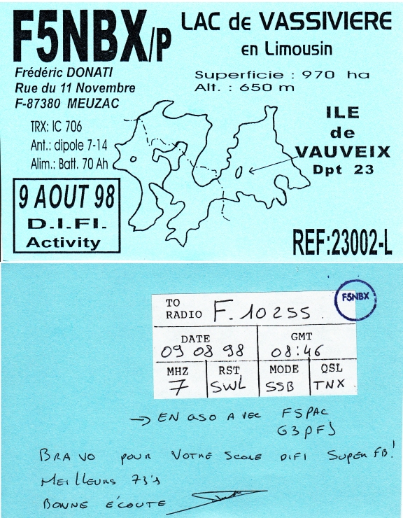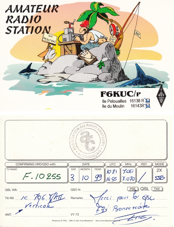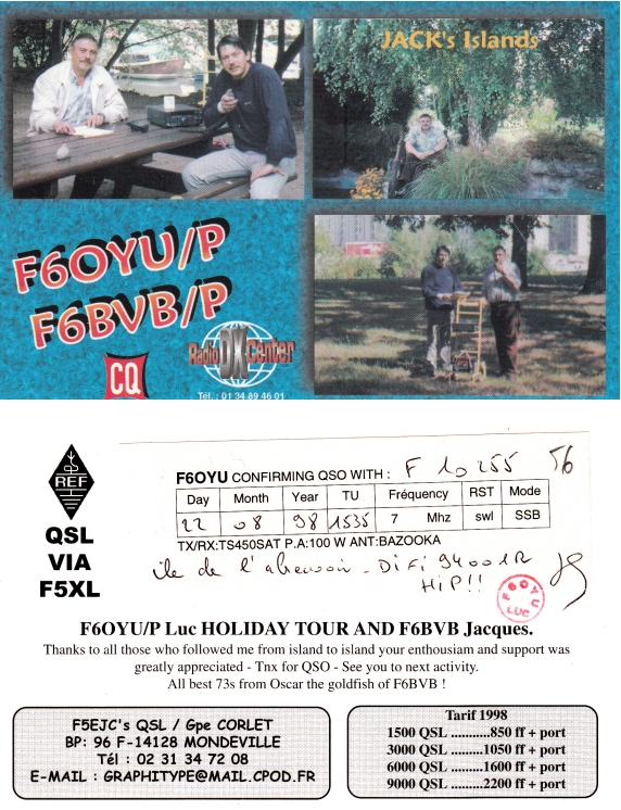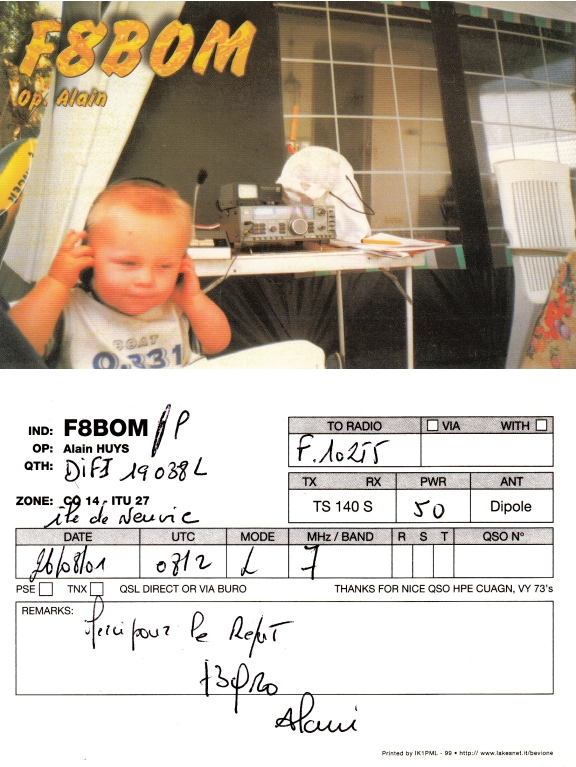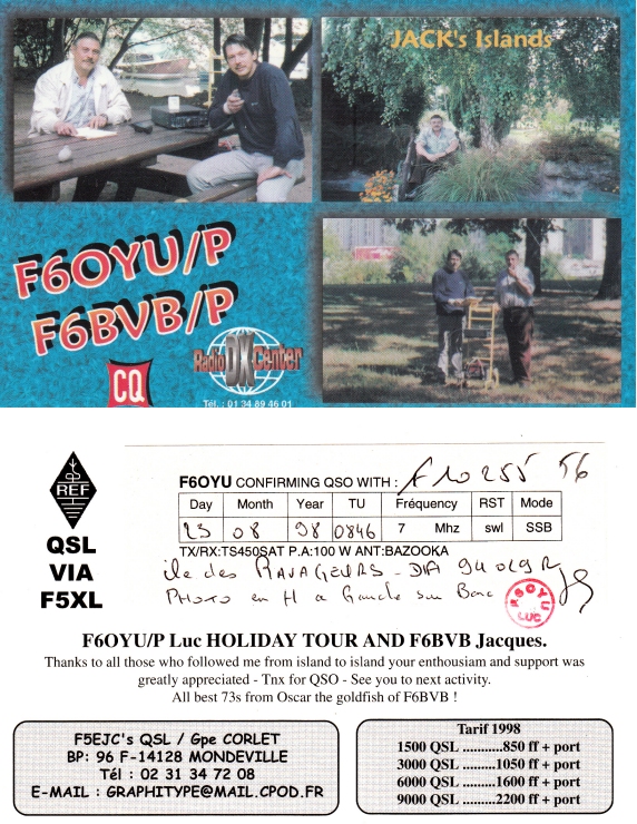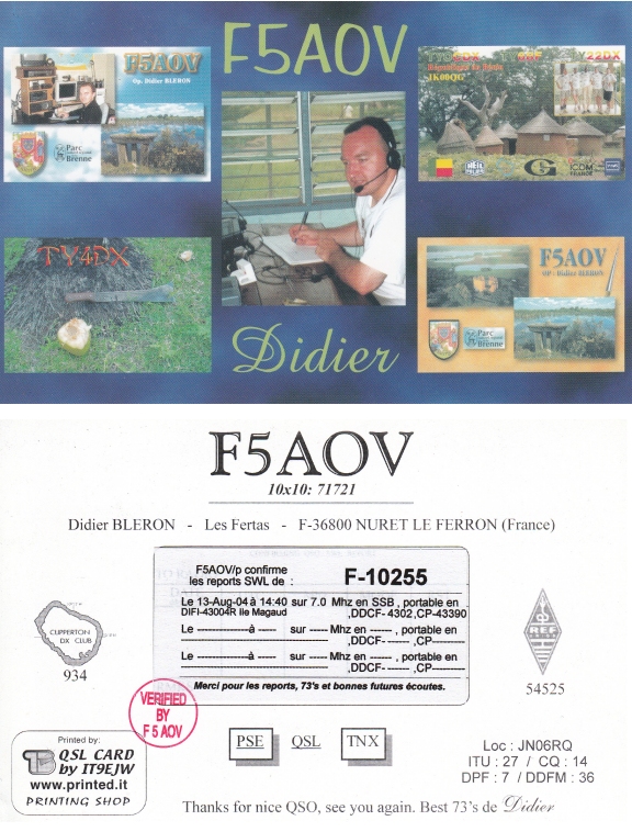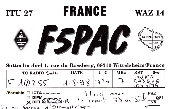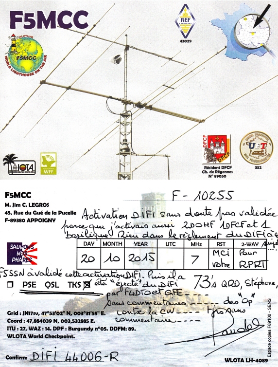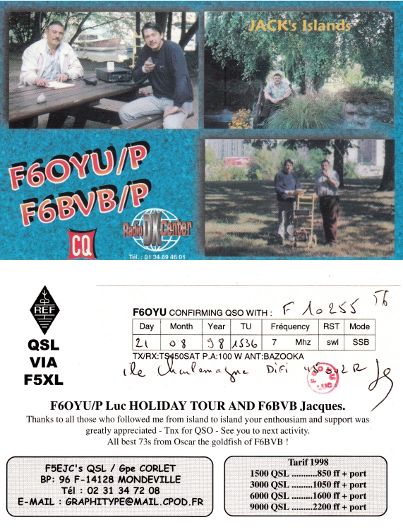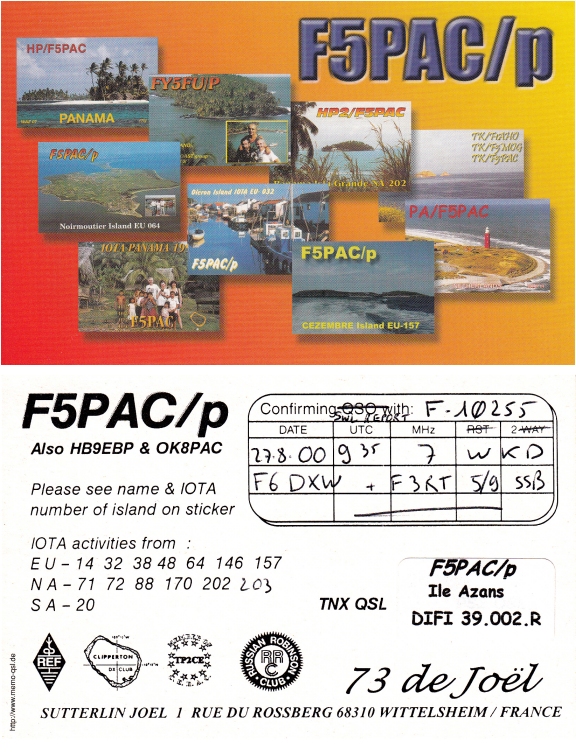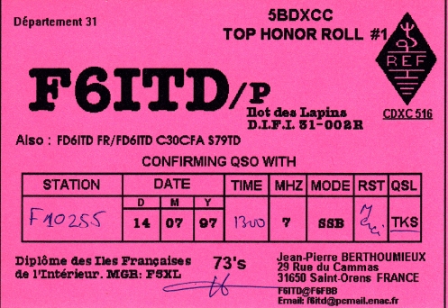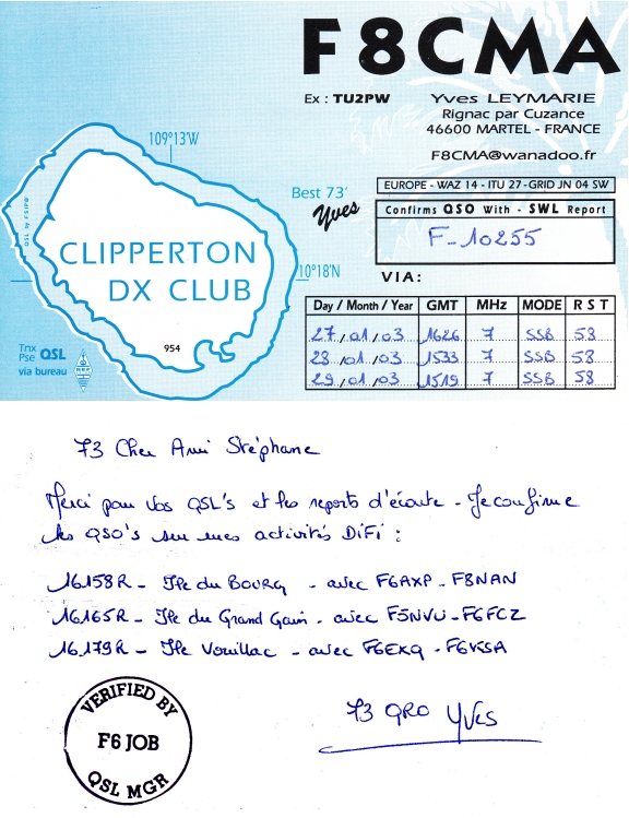 Qsl - Contrées Dxcc - Dxcc countries Qsl - Contrées supprimées - Deleted Dxcc Qsl - Contrées non DXCC - Non Dxcc countries Qsl extra-terrestres - Extraterrestrial Qsl Qsl des îles de la France métropolitaine (DIFM) Qsl des îles françaises d'Outremer (DIFO) Qsl des îles du Morbihan (DIM) Qsl radiodiffusion & utilitaires - Broadcast & utilitary