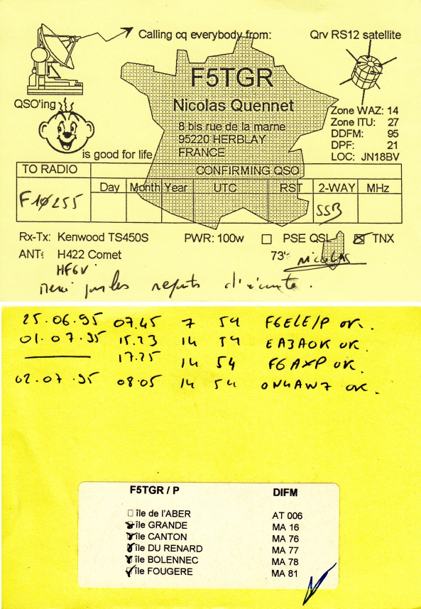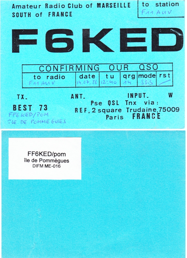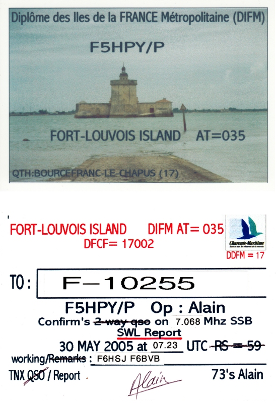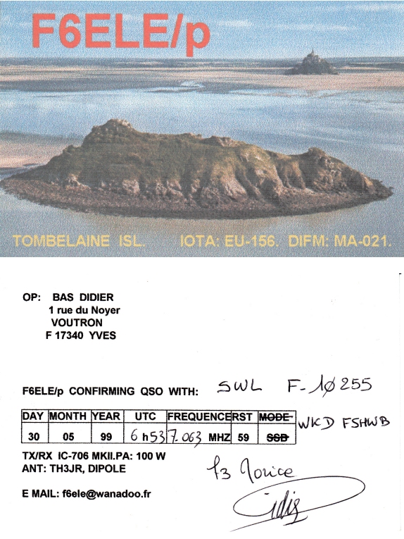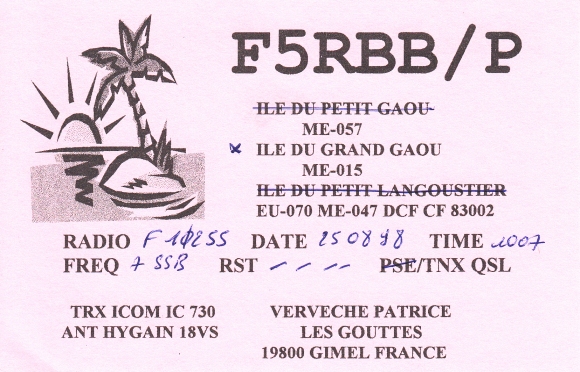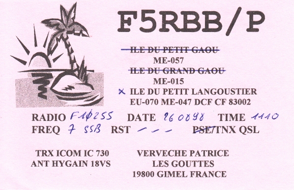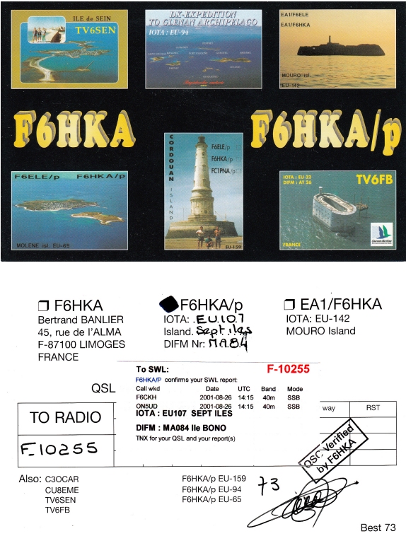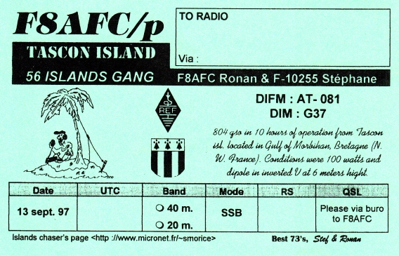 Qsl - Contrées Dxcc - Dxcc countries Qsl - Contrées Dxcc supprimées - Deleted Dxcc Qsl - Contrées non DXCC - Non Dxcc countries Qsl extra-terrestres - Extraterrestrial Qsl Qsl des îles françaises d'Outremer (DIFO) Qsl des îles françaises de l'intérieur (DIFI) Qsl des îles du Morbihan (DIM) Qsl radiodiffusion & utilitaires - Broadcast & utilitary
