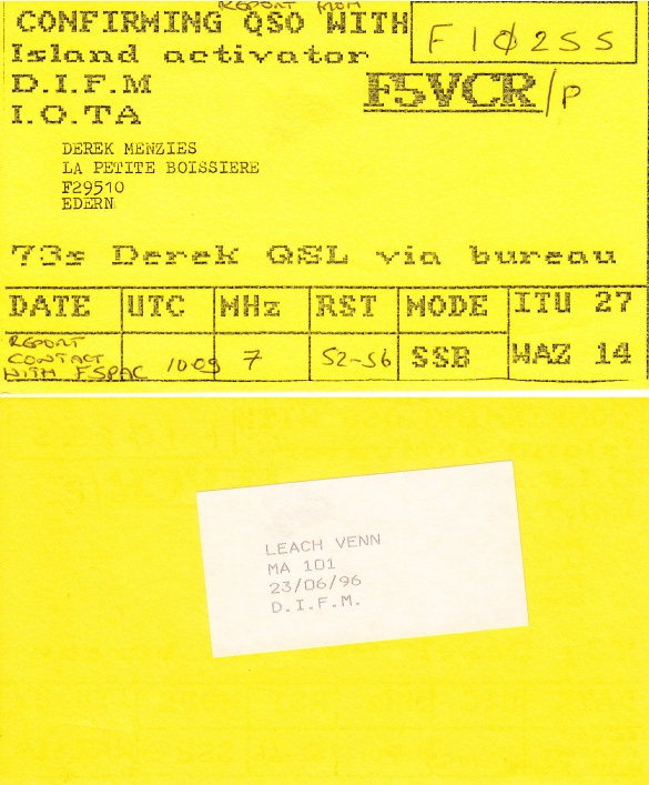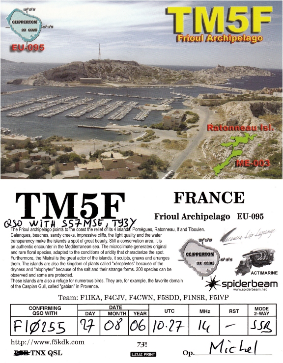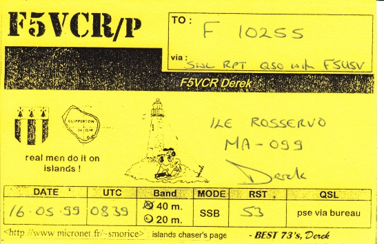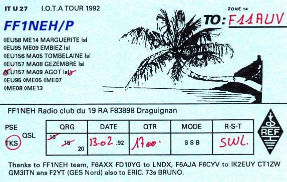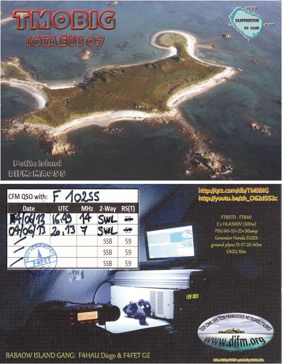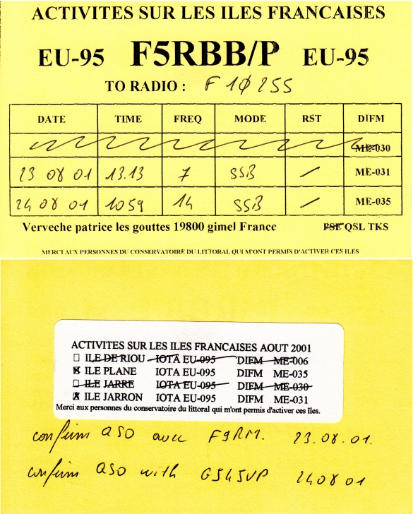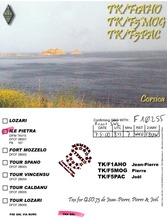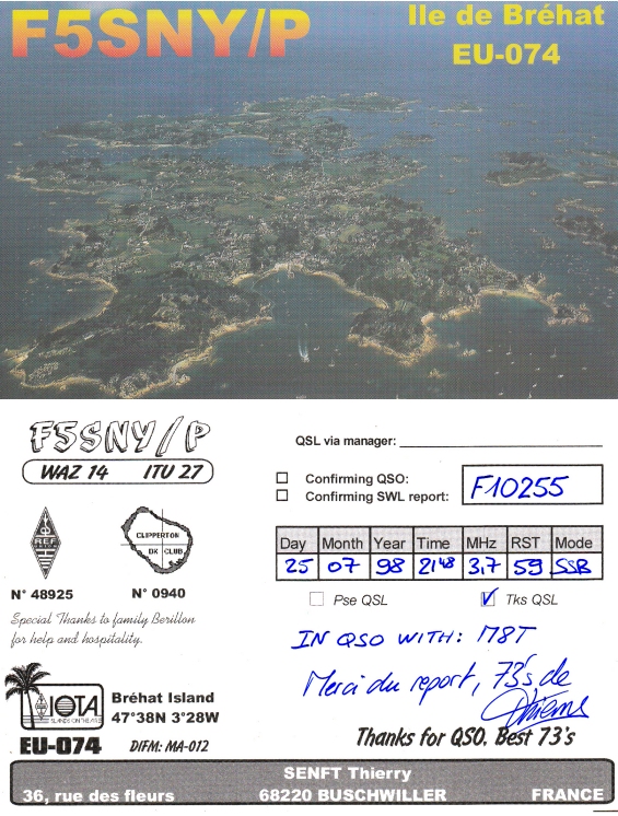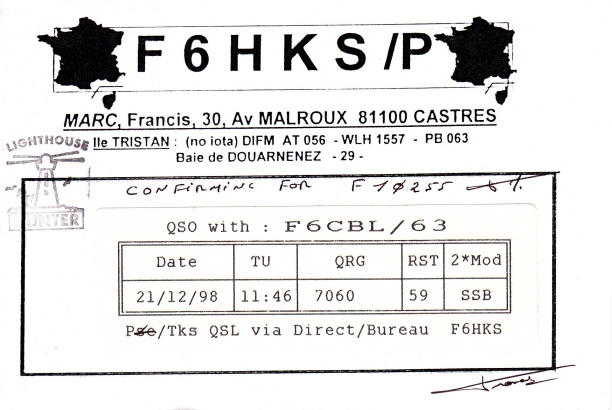 Qsl - Contrées Dxcc - Dxcc countries Qsl - Contrées Dxcc supprimées - Deleted Dxcc Qsl - Contrées non DXCC - Non Dxcc countries Qsl extra-terrestres - Extraterrestrial Qsl Qsl des îles françaises d'Outremer (DIFO) Qsl des îles françaises de l'intérieur (DIFI) Qsl des îles du Morbihan (DIM) Qsl radiodiffusion & utilitaires - Broadcast & utilitary