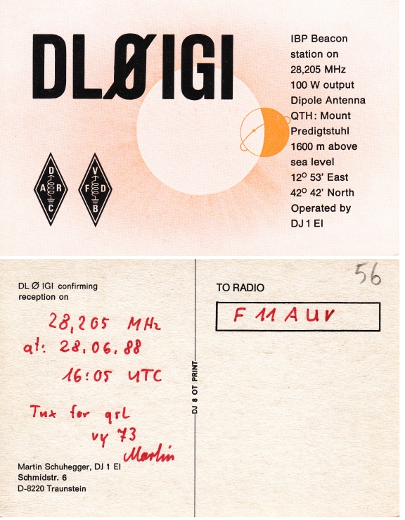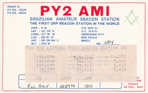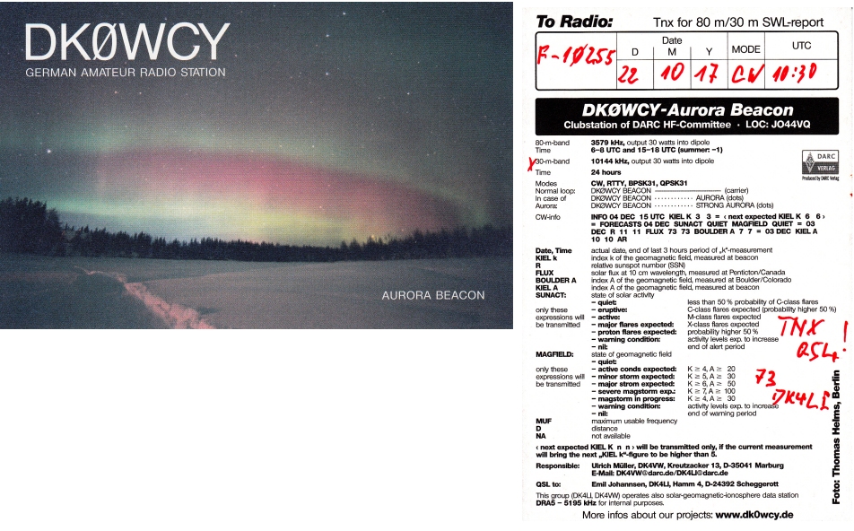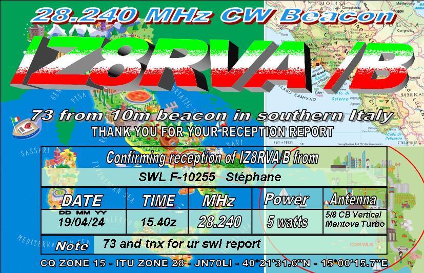 | DK0WCY- 30m | OK0EG - 10m | OE3XAC - 10m | IZ1UHA/B - 30m | Radio Pirana Internacional - 6330 KHz | IZ3DVW/B - 30m | IZ3RVA/B - 10m |