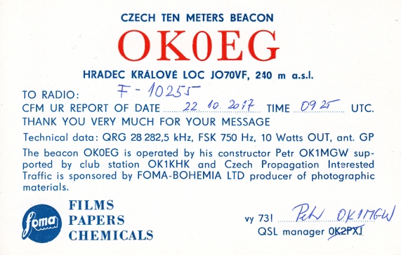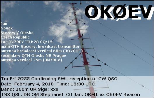 SK6RUD - 30m | OK0EV - 160m | II3MV (sat) - 2m |