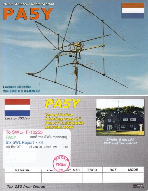 | PH | CW | DATA | 160 m | 80 m | 60 m | 40 m | 30 m | 20 m | 17 m | 15 m | 12 m | 10 m | 6 m | 4 m | 8 m | 2 m | 2 m EME | 70 cm | 23 cm | sat | QO-100 | LF | ||