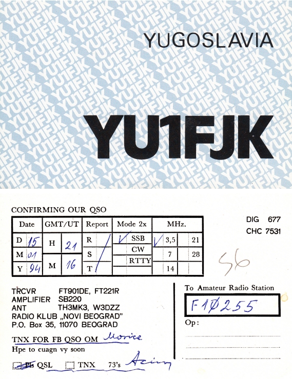 | YT-YU, YZ | Yugoslavia / Serbia |