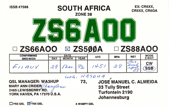 | ZR-ZU | South Africa |