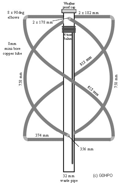 - 1 tube PVC diamètre 32 mm, 1m, - tube cuivre écroui diamètre 8 mm (6 x 8 mm), 2 barres de 1m, - tube cuivre recuit diamètre 8 mm (6 x 8 mm), couronne de 4m (difficile à approvisionner voir sanitaire express), - 8 coudes cuivres 8mm, - câble coaxial, fiche coaxiale (PL59, F, N ...) - bouchon pour l'étanchéité (bouchon de spray)