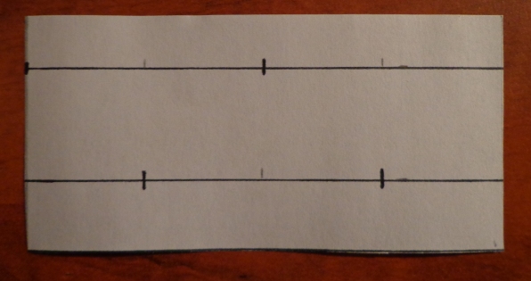 Bas Découper une bande de papier de largeur d'environ 5 cm. Enrouler la bande de papier autour du tuyau PVC, couper la bande à l'endroit du recouvrement. tracer deux lignes parallèles éloignées d'exactement 24 mm. Diviser la bande en 4 et tracer les 4 points en alternance sur les deux lignes. Les trous des deux lignes seront décalés de 90°.