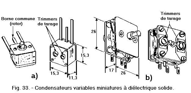 - 2 x 265 pF + 4 x 20 pF (trimmers) ; profondeur 11,7 mm, - 2 x 335 pF + 3 x 20 + 4 x 20 (trimmers) ; profondeur 21 mm. |